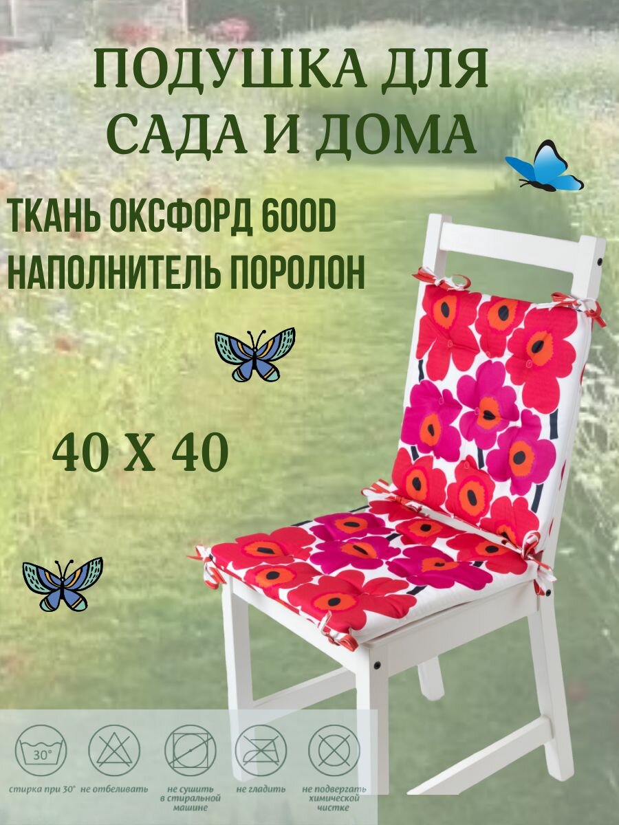 Подушка на стул 4ШТ. непромокаемая для дома сада улицы Цвет Малиновая ромашка 4 завязки 40х40: сравнение цен, характеристики, фото, актуальное наличие и цены.