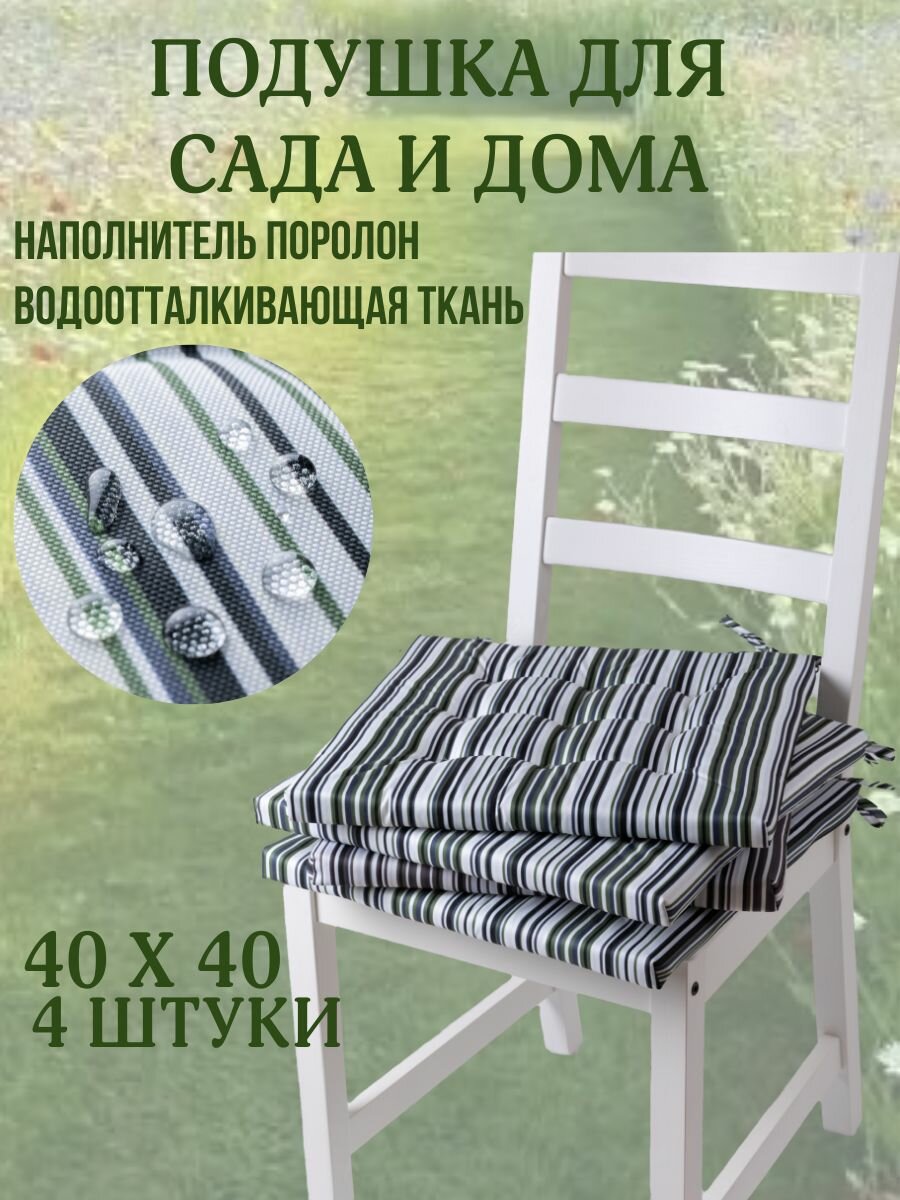 Подушка на стул 4ШТ. непромокаемая для дома сада улицы Цвет Серая полоска 2 завязки 40х40: сравнение цен, характеристики, фото, актуальное наличие и цены.