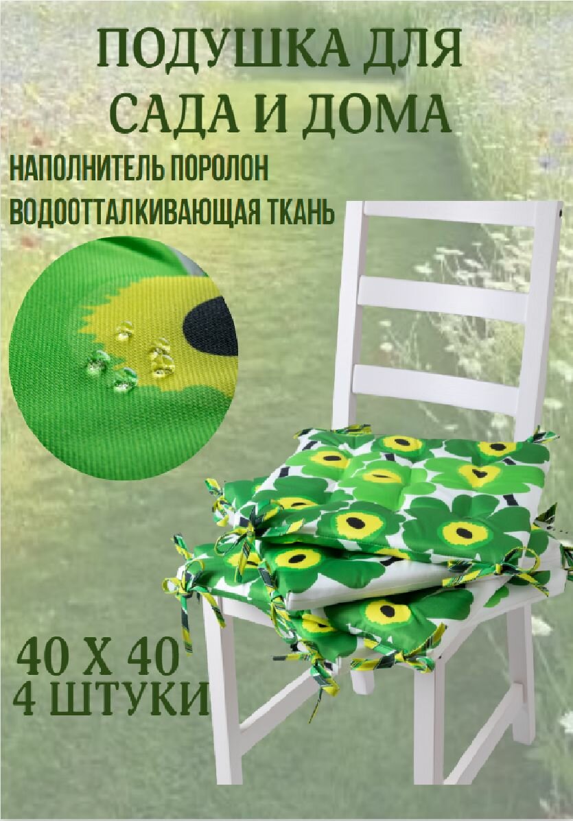 Подушка на стул 4ШТ. непромокаемая для дома сада улицы Цвет Зеленая ромашка 4 завязки 40х40: сравнение цен, характеристики, фото, актуальное наличие и цены.