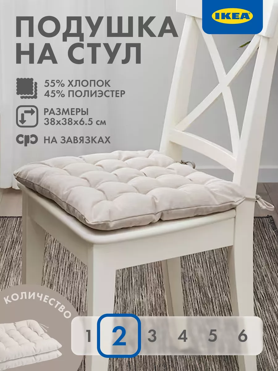 Подушка на стул IKEA виппэрт подходит для стульев стефан, каустби, ивар, ингольф и йокмокк. В комплекте вы получаете две подушки размером 38 х 38 см каждая.