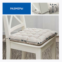 Двусторонняя подушка позволяет равномерно изнашивать обе стороны, что продлевает срок службы изделия. Завязки фиксируют подушку на сиденье стула, обеспечивая надежное крепление.