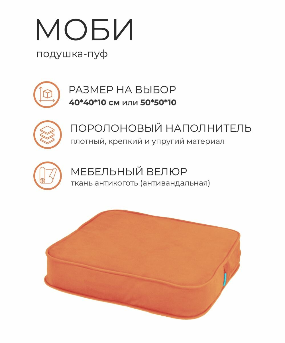 Подушка на стул МОБИ 50*50 см, для кресла, сиденья, скамейки, паллет, пола, съёмный чехол, поролон/велюр (оранжевый): сравнение цен, характеристики, фото, актуальное наличие и цены.