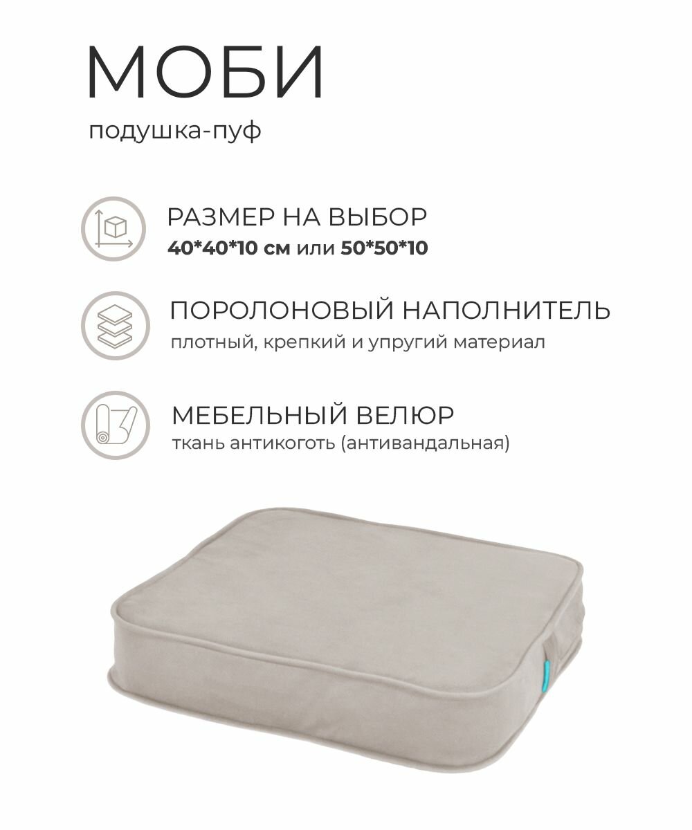 Подушка на стул МОБИ 50*50 см, для кресла, сиденья, скамейки, паллет, пола, съёмный чехол, поролон/велюр (серый): сравнение цен, характеристики, фото, актуальное наличие и цены.