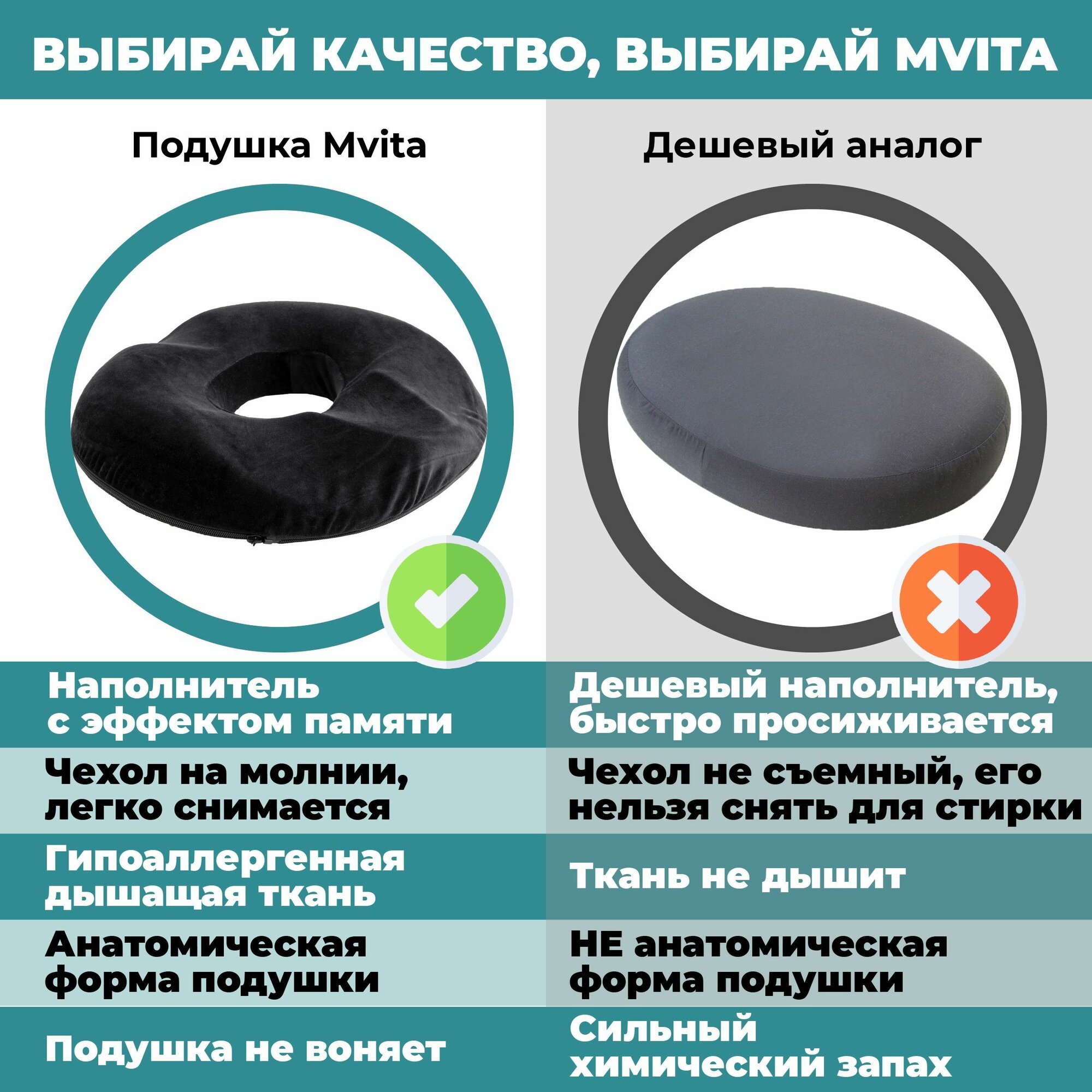 Ортопедическая подушка для сидения Mvita круглой формы с отверстием и эффектом памяти - это надежный и практичный помощник, который позволит вам с комфортом и уверенностью сидеть и самочувствовать превосходно.