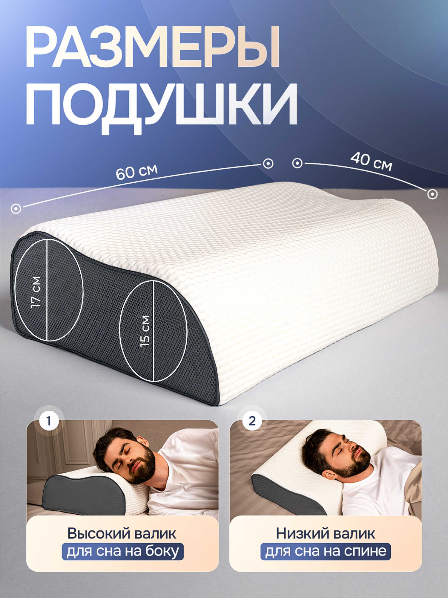 Купить Подушка ортопедическая для мужчин, средней жесткости, с эффектом памяти, 60×40, валики 15 и 17 см, высокая с доставкой по всей России. Подушка ортопедическая для мужчин, средней жесткости, с эффектом памяти, 60×40, валики 15 и 17 см, высокая: сравнение цен, характеристики, фото, актуальное наличие и цены.