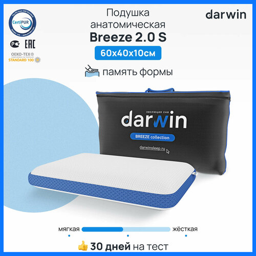 Подушка ортопедическая для сна Darwin Breeze 2.0 S c эффектом памяти, охлаждающая, анатомическая, 40х60 см, высота 10 см: сравнение цен, характеристики, фото, актуальное наличие и цены.