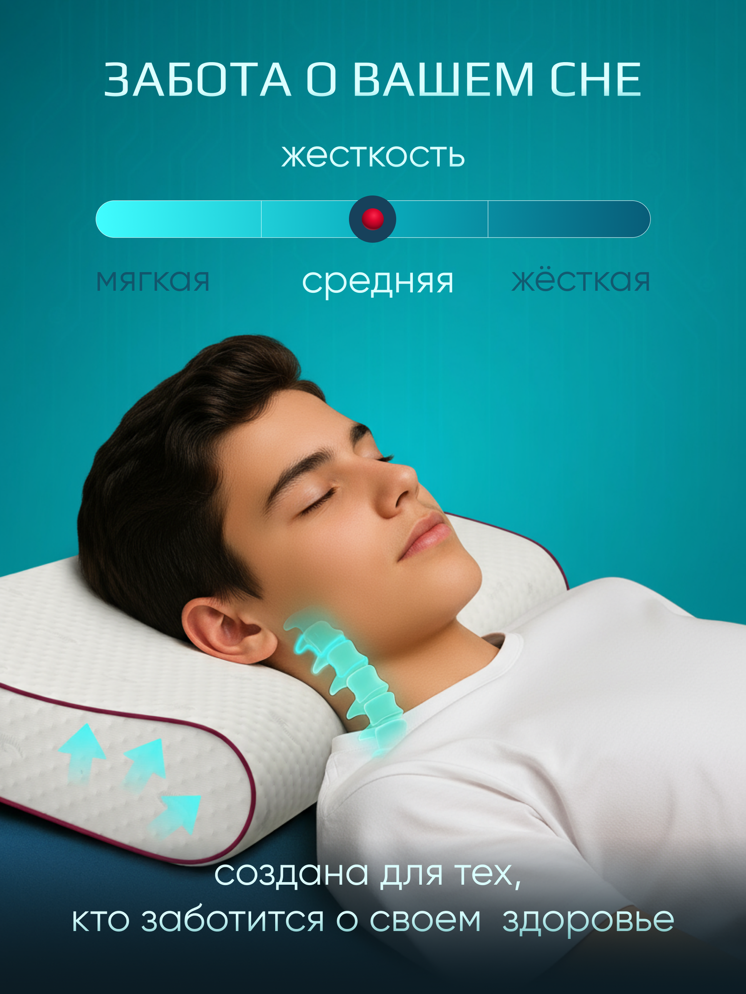 Анатомическая форма подушки адаптируется к контурам вашего тела, обеспечивая оптимальную поддержку шеи и головы. Это помогает избежать дискомфорта и болей, способствуя качественному и здоровому сну.