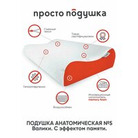 "просто подушка No 5" ортопедическая подушка для сна формы валики, степень жесткости Мягкая 60х30х8/11 см.