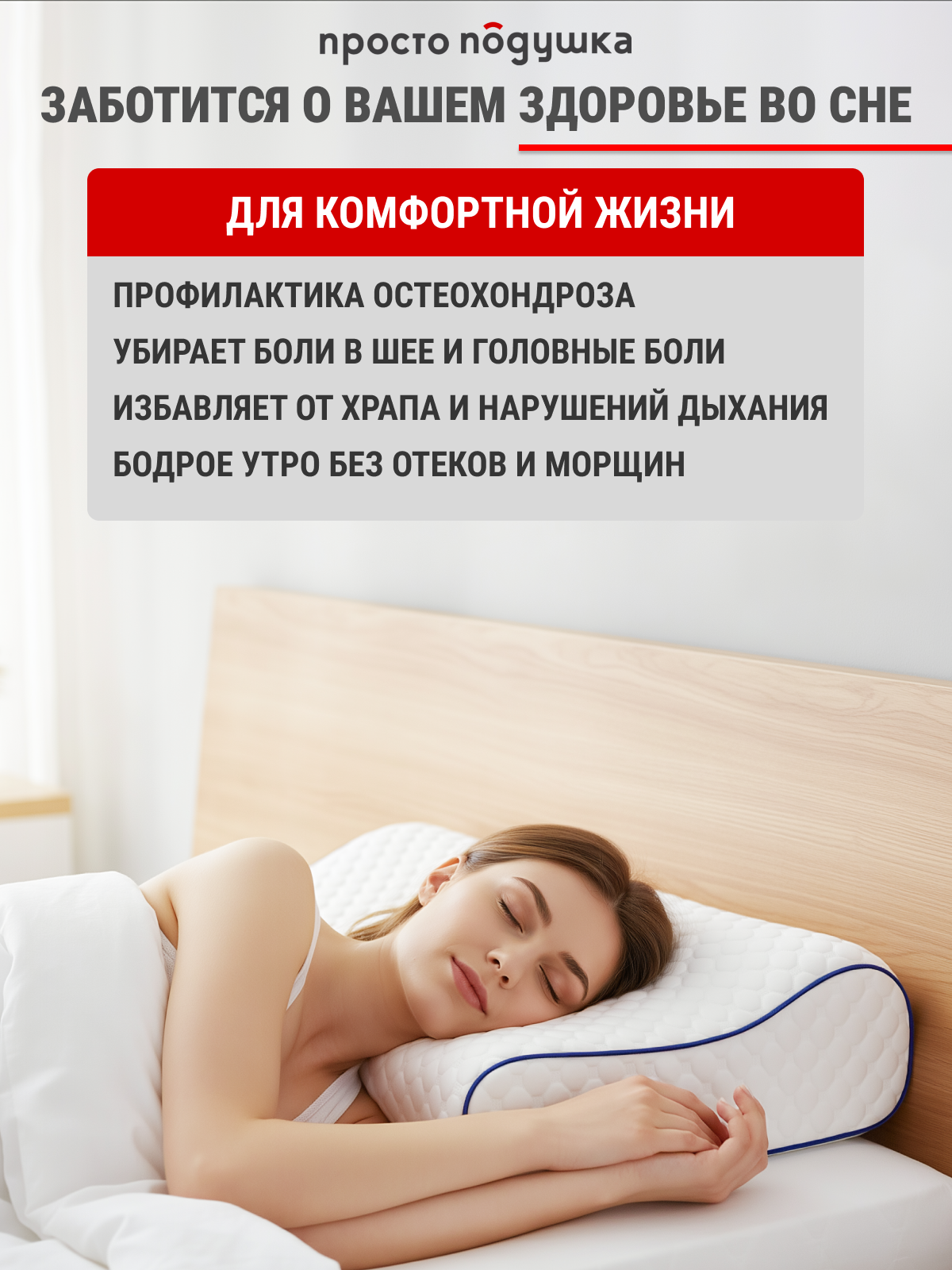Выбирая ортопедическую подушку с эффектом памяти "ПРОСТО ПОДУШКА №31", вы получаете гарантию здорового и полноценного отдыха, а также возможность избавиться от боли и дискомфорта в спине и плечах.