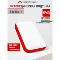 "ПРОСТО ПОДУШКА №43" ортопедическая подушка для сна классической формы, средней жесткости 58х38х14 см.
