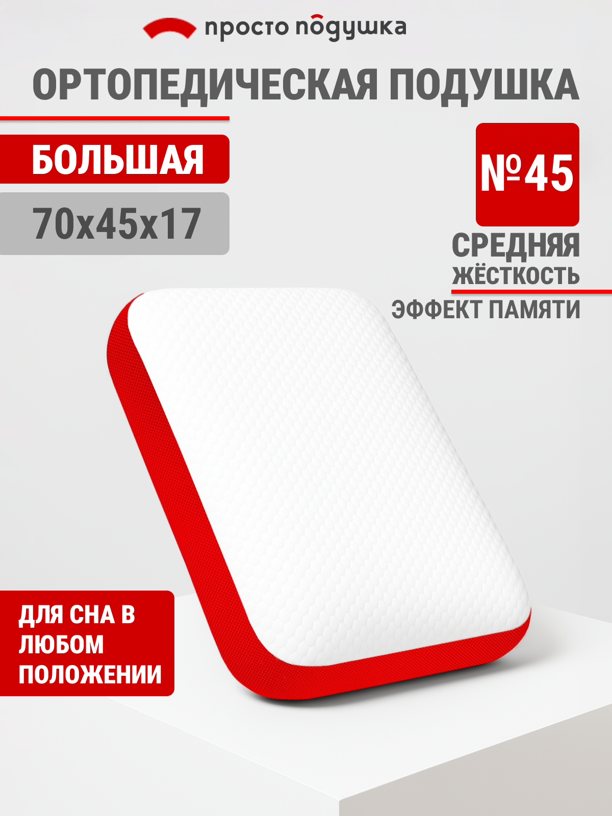 "ПРОСТО ПОДУШКА №45" ортопедическая подушка для сна классической формы, средней жесткости 70х45х16 см.