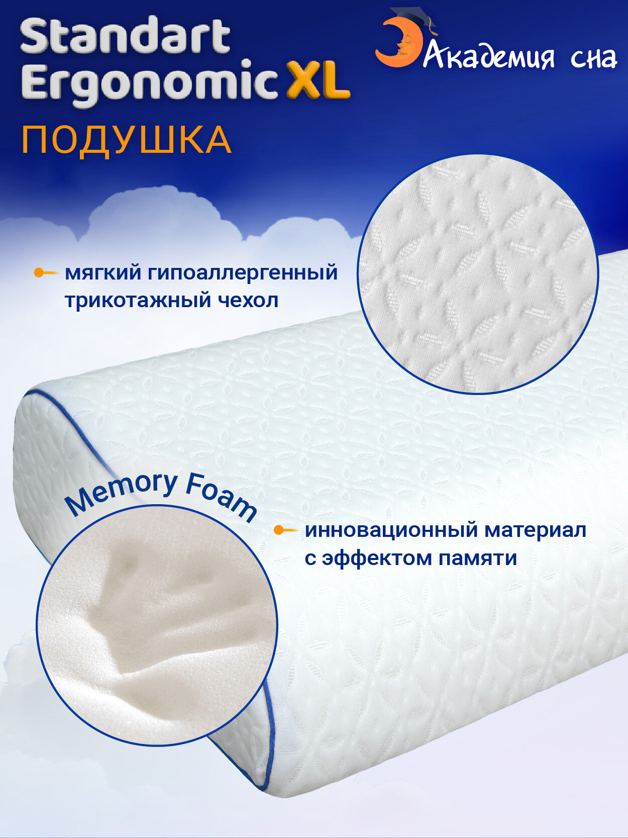 Купить Подушка ортопедическая с эффектом памяти Sleep Mode Standart Ergonomic XL с доставкой по всей России.