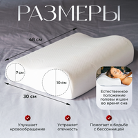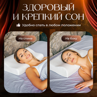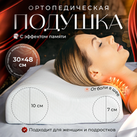 Ортопедическая подушка для сна с эффектом памяти Memory Foam и размером 48х30 с валиками 7 и 10 см отлично подходит для женщин и подростков, имеет среднюю жесткость.
