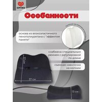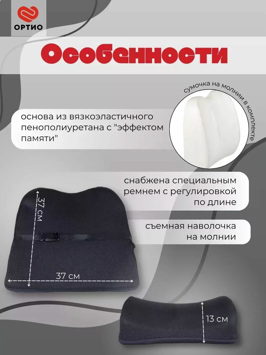 - конструкция подушки с выраженной боковой поддержкой поясницы обеспечивает фиксацию и стабилизацию поясничной области;