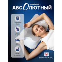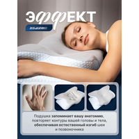 Анатомическая подушка для сна имеет форму волны с валиками 8 и 11 см для сна на спине или животе, а также отдельные крылья подушки по 13 см, чтобы лежать на боку. Такая ортопедическая подушка подходит для взрослых и детей, может быть полезна для мужчин, страдающих от храпа, благодаря правильной поддержке головы.