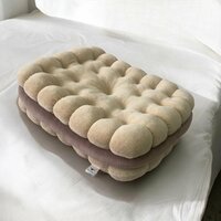 Подушка выполнена в форме бисквитного печенья с кремом, что обязательно приведет в восторг детей и взрослых. Она добавит оригинальности и уюта в детскую комнату и дом в целом.