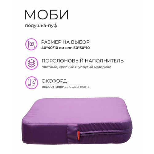 Купить Подушка пуф моби во 50х50х10см для сидения на диван кресло стул садовые качели на пол поролон водоотталкивающая ткань (фиолетовый / Фиолетовый) с доставкой по всей России. Подушка пуф моби во 50х50х10см для сидения на диван кресло стул садовые качели на пол поролон водоотталкивающая ткань (фиолетовый / Фиолетовый): сравнение цен, характеристики, фото, актуальное наличие и цены.