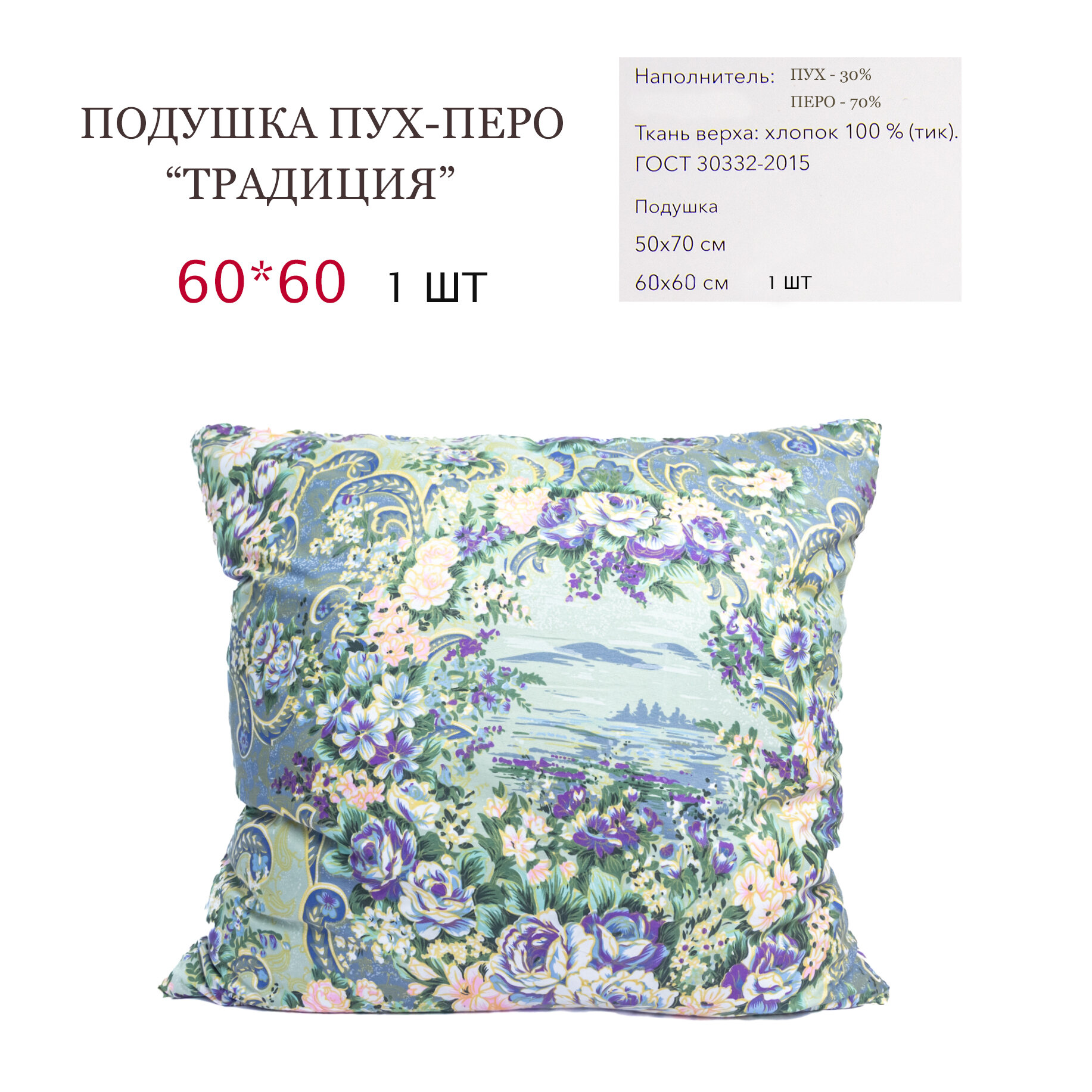 Подушка пух-перо 60*60 «Традиция» Belashoff: сравнение цен, характеристики, фото, актуальное наличие и цены.