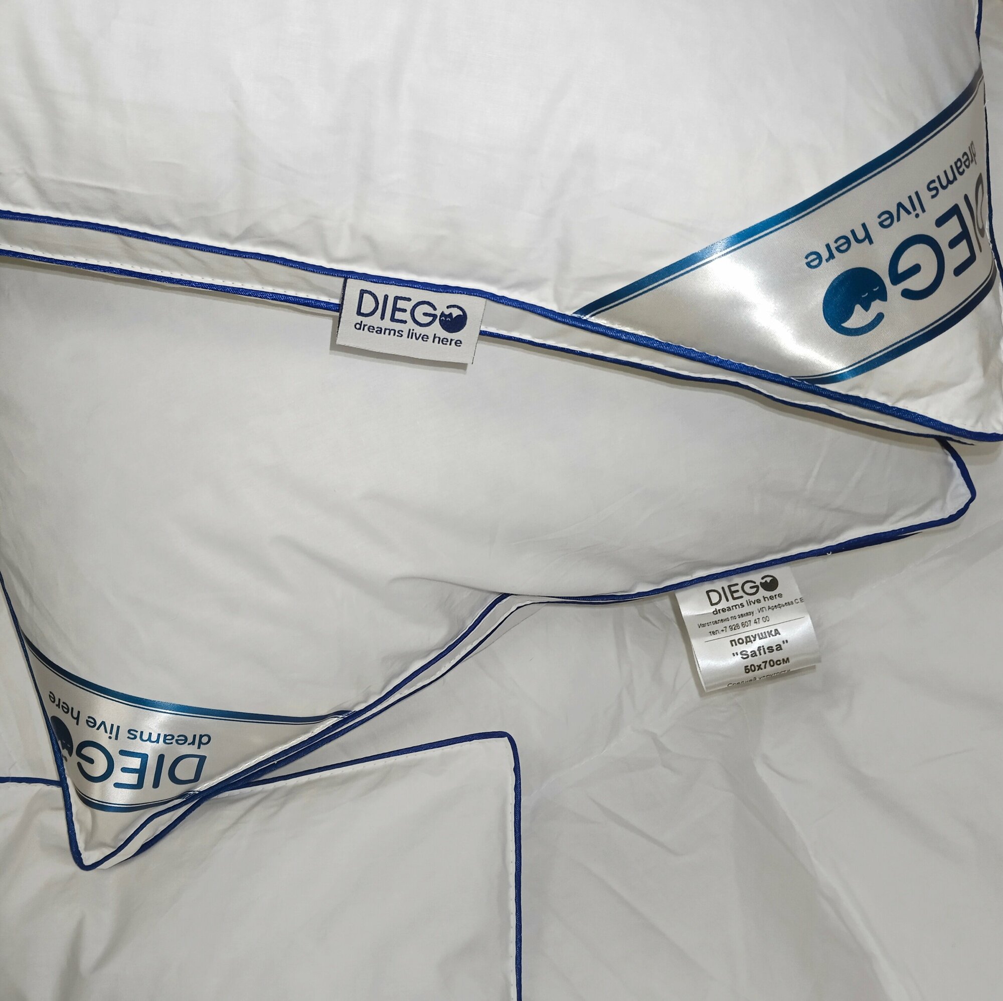 Вес наполнителя 850 гр. Пух Экстра отличается легким весом и высокой степенью FP. Поэтому он быстро восстанавливает форму, но не пружинит. Бортик по периметру - обеспечивает дополнительный объем, позволяет пуху равномерно распределятся и обеспечивать поддержку головы и шеи. Модель Safisa очень мягкая на ощупь подушка, легкая, воздушна. Обеспечивает мягкую, деликатную поддержку головы в любой позе спящего. Подходит для сна на животе и спине. Рекомендована к использованию взрослым и даже детям. Высота при нагрузке 7-8 см. Без нагрузки подушка пышная, достигает в высоту 22-25 см.