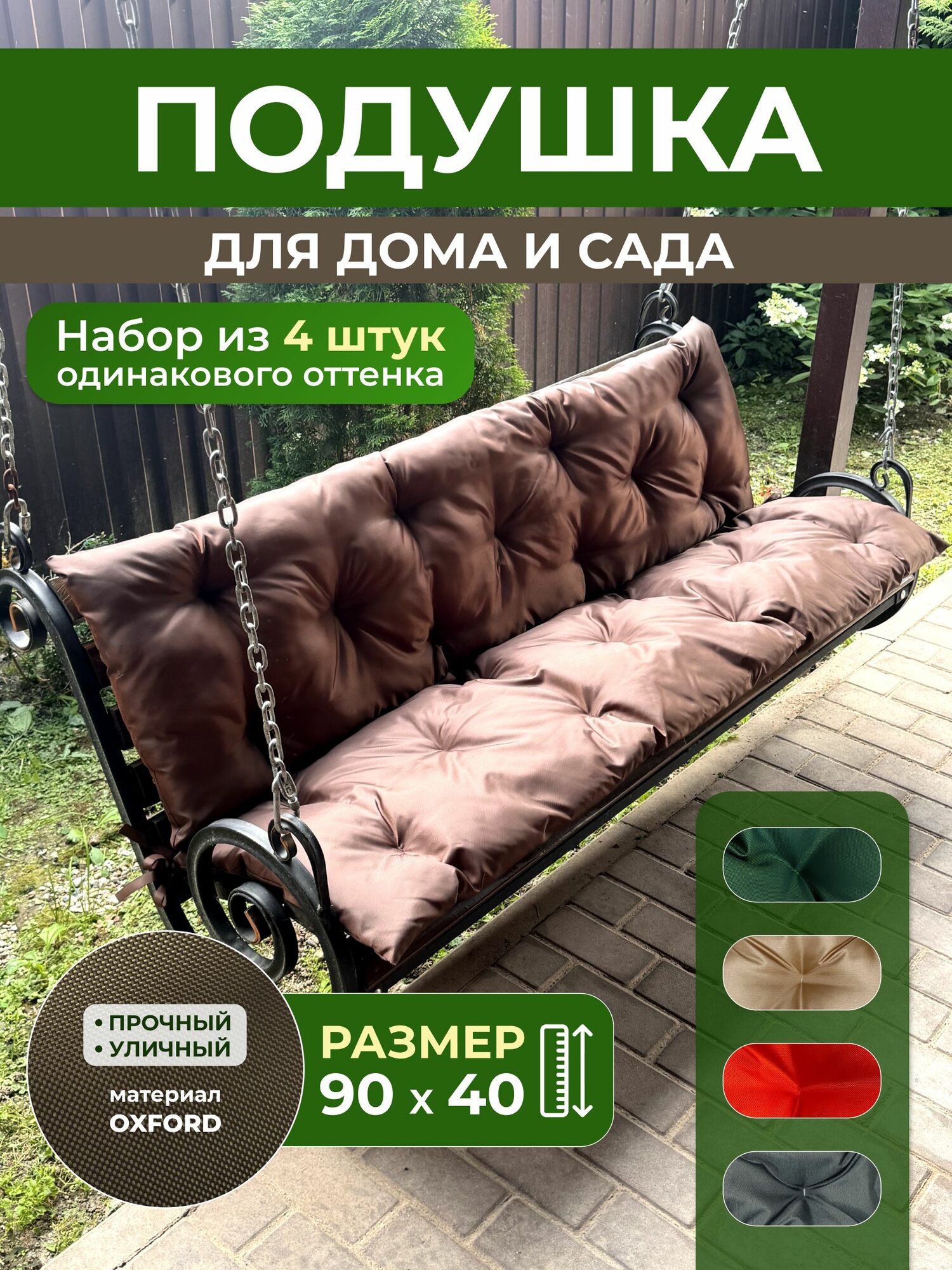 Подушка садовая на скамью, качель 90х40 см набор 4 шт. коричневый: сравнение цен, характеристики, фото, актуальное наличие и цены.