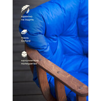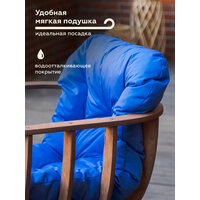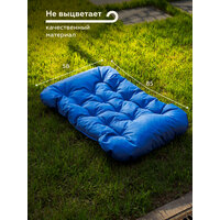 Подушка изготовлена из высококачественной водонепроницаемой ткани синего цвета, что обеспечивает долговечность и защиту от влаги. Размер подушки составляет 85х58х10 см, что позволяет использовать ее с большинством садовых кресел подходящих размеров.