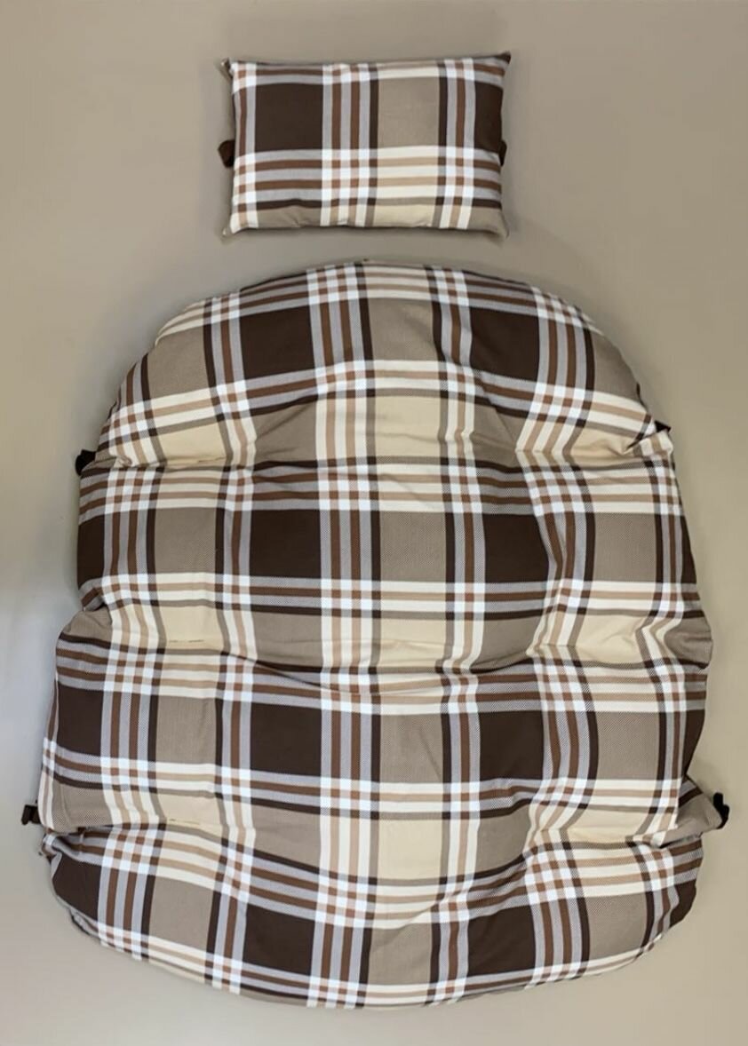 Купить Подушка со съемным чехлом на подвесные качели кокон, с подголовником MotPro.brothers 110х95, Клетка капучино с доставкой по всей России.