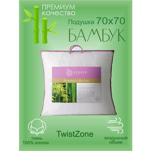 Подушка имеет две камеры, в одной - прослойка из бамбукового волокна, в другой - наполнитель заменитель лебяжьего пуха - микроволокно DownFill (100% п/э), который создает основной объем и не дает подушке сбиться.