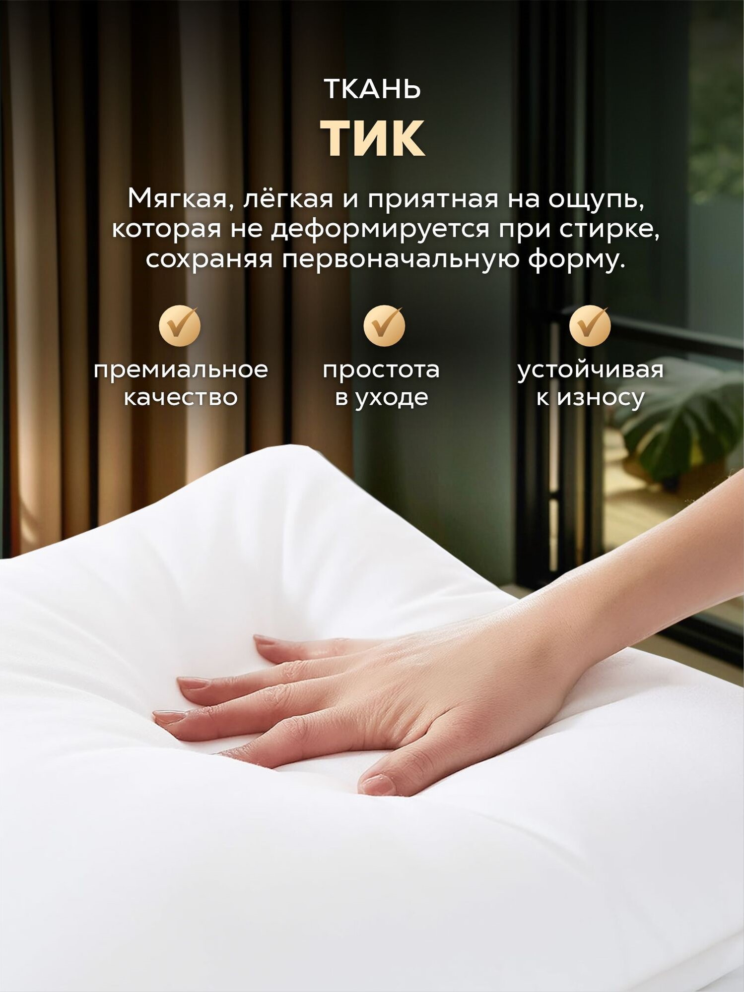Комплект подушек 50х70 из искусственного лебяжьего пуха — высокотехнологичного гипоаллергенного волокна, которое по своим свойствам не уступает натуральному, а по некоторым показателям даже превосходит его. Подушки из «лебяжьего пуха» отличаются легкостью, мягкостью и долговечностью. Тонкие волокна, закрученные в спирали, хорошо поддерживают голову и шею, моментально восстанавливают форму и не деформируются даже после длительного использования. Подушки не накапливают пыль, запахи, влагу. Отлично пропускают воздух, не требуют взбивания, обеспечивают комфортный отдых в любое время года. Чехол на молнии позволяет регулировать уровень наполнителя, благодаря чему изделия подходят для сна на спине, боку, животе. По периметру декоративный кант. Уход: стирка в деликатном или ручном режиме при температуре не выше 30 °C, естественная сушка на горизонтальной поверхности, использование отбеливателя и других агрессивных средств запрещено. Подушки 50*70 от Oltex подходят для дома и дачи, спальни и гостиной, путешествий, отдыха на природе. Станут полезным и практичным подарком для близких и друзей. 50/70 — стандартный размер, поэтому подушки для сна могут использоваться с любыми подходящими наволочками. Постельные принадлежности доставляются в скрученном виде/ После извлечения из упаковки подушки 50 70 нужно выложить на горизонтальной поверхности, через 5-8 часов они восстановят исходный объем. В нашем каталоге представлен широкий выбор спальных принадлежностей на любой вкус. Создайте комфорт и уют вместе с Олтекс!
