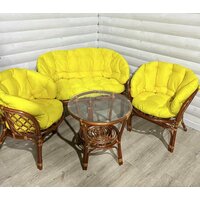Комплект состоит из 6 частей: 4 подушки на кресла (2 сидушки размер 54х54) и 2 спинки высота 40 см) 2 подушки на диван Багама ( 1 сидушка размер 107 см на 54 см и 1 спинка высота 40 см)