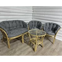 Комплект состоит из 6 частей: 4 подушки на кресла (2 сидушки размер 54х54) и 2 спинки высота 40 см) 2 подушки на диван Багама ( 1 сидушка размер 107 см на 54 см и 1 спинка высота 40 см)
