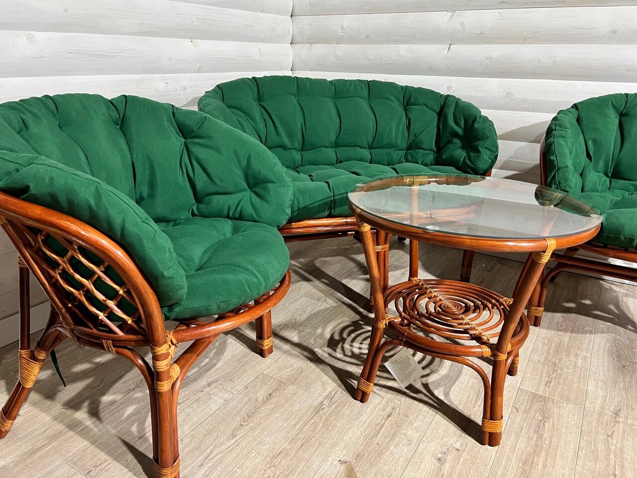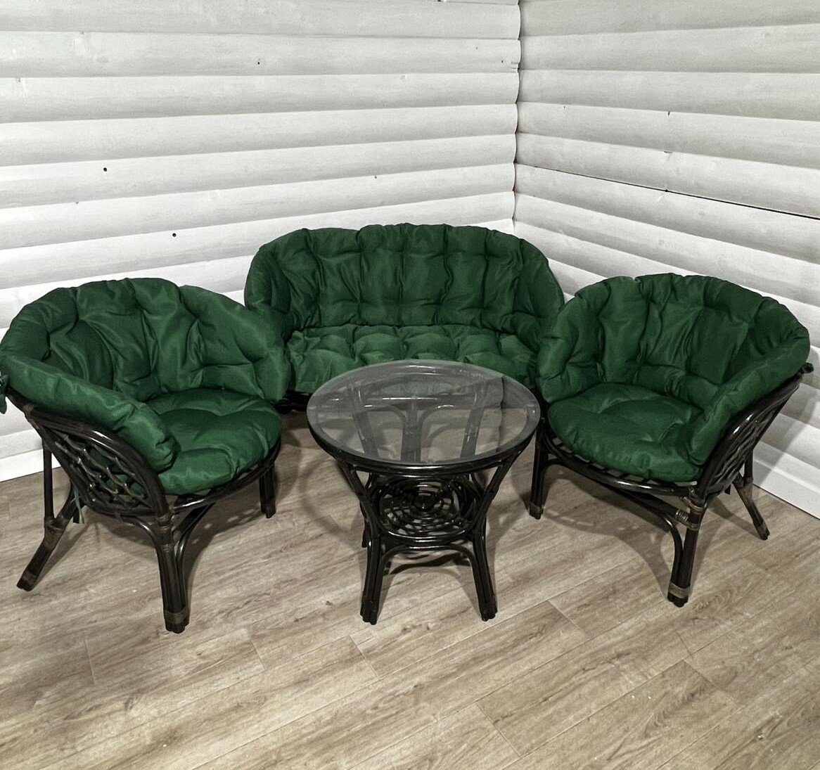 Комплект состоит из 6 частей: 4 подушки на кресла (2 сидушки размер 54х54) и 2 спинки высота 40 см) 2 подушки на диван Багама ( 1 сидушка размер 107 см на 54 см и 1 спинка высота 40 см)