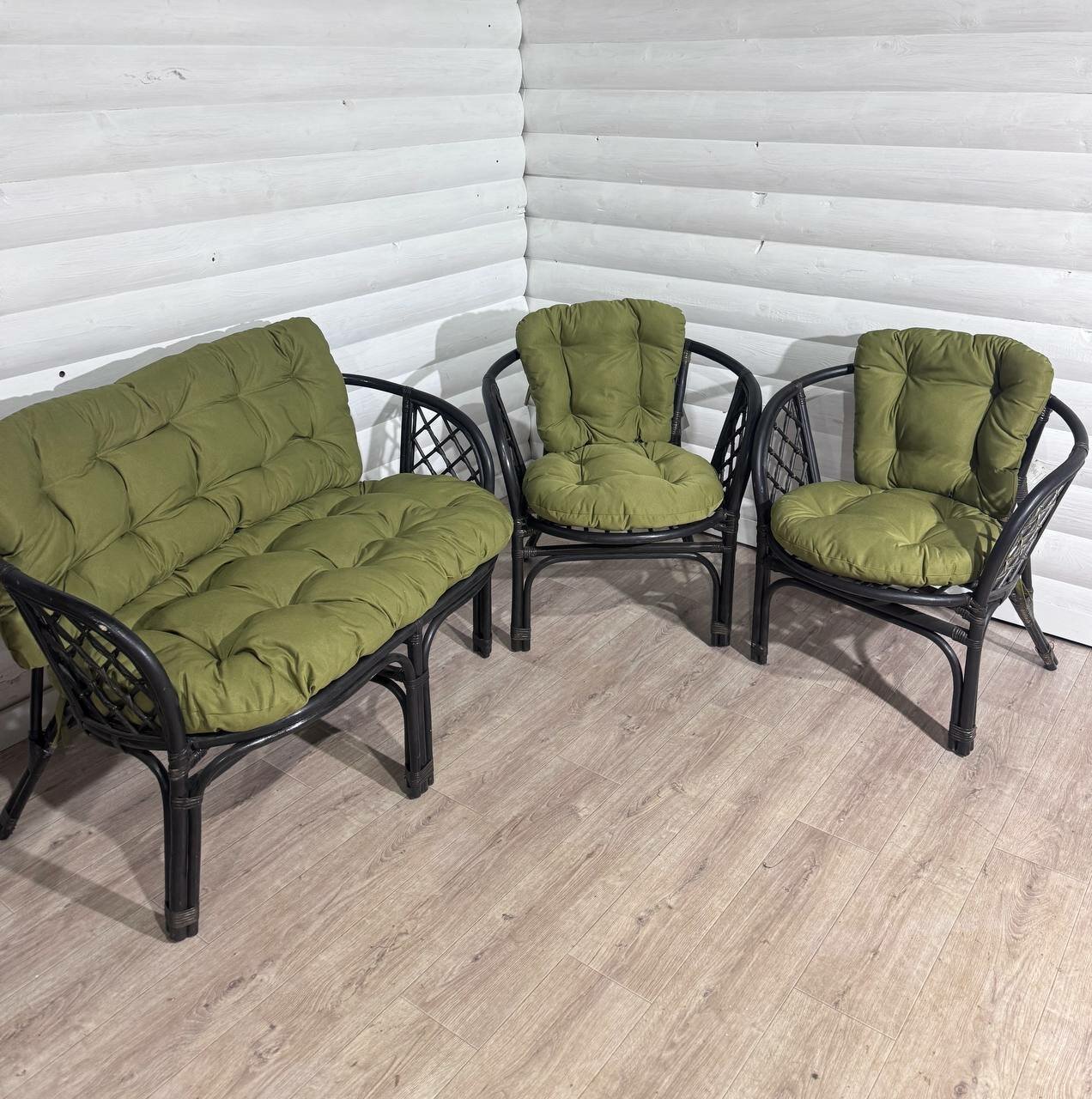 Подушки для комплекта Багама Комплект состоит из 6-х частей (3 спинки и 3 сидушки) размеры: кресло сидушка d=54 см, спинка h=44 см, ширина в верхней части 48 см, в нижней 40 см диван сидушка 54 на 107 см, спинка 44 на 100 см