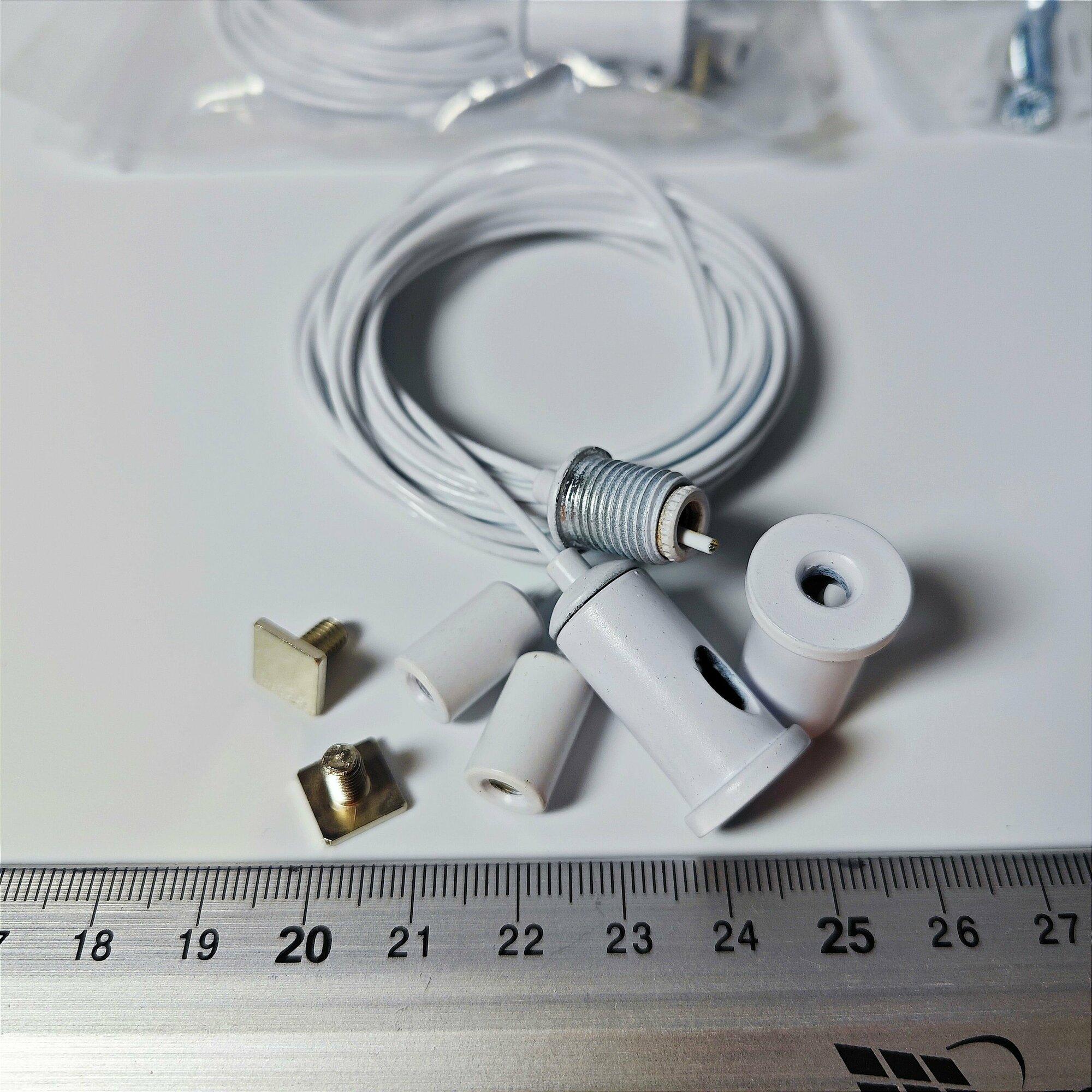 Купить Подвес для светильников трос 2метра/10шт/белый/квадратный метиз. Монтажное крепление стальное для ламп, рекламы, вытяжки, шинопровода, треков, картин, рекламы с доставкой по всей России.
