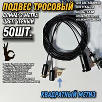 Подвес для светильников трос 2метра/50шт/чёрный/квадратный метиз. Монтажное крепление стальное для ламп, рекламы, вытяжки, шинопровода, треков, картин, рекламы: сравнение цен, характеристики, фото, актуальное наличие и цены.