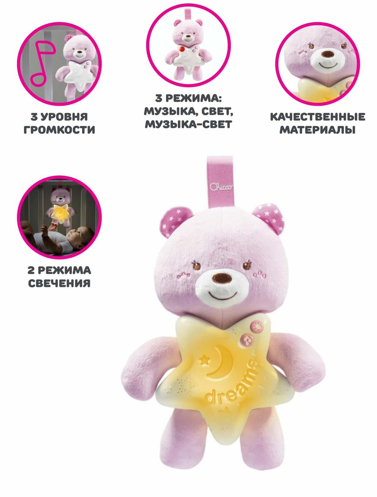Мягкая игрушка музыкальная подвеска на кроватку Chicco Медвежонок, розовый: сравнение цен, характеристики, фото, актуальное наличие и цены.
