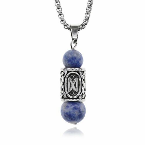 Натуральный камень: Содалит. Материал рунический бусины: нержавеющая сталь. Диаметр бусин из камня: 8 и 10 мм. Комплектация: кулон-амулет, металлическая цепочка, двухсторонний вкладыш. Упаковка: полипропиленовый пакет, этикетка с описанием значения камня. Готовый подарок со смыслом себе или близкому человеку.