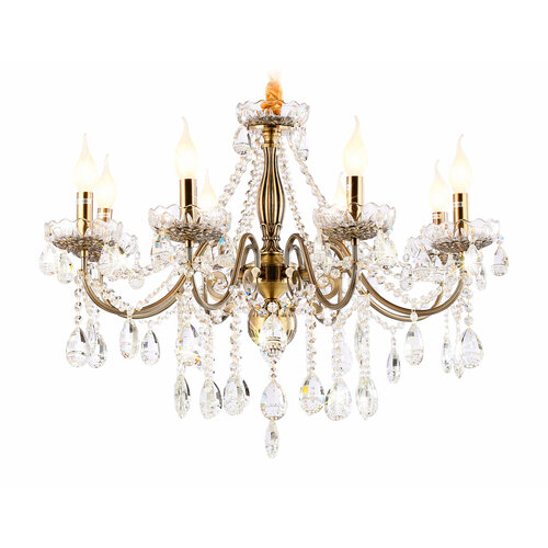 Подвесная классическая люстра из коллекции TRADITIONAL. Модель TR4950 выполнена из металлического корпуса бронзового цвета и декорирована превосходным прозрачным хрусталем. Для данной модели подойдут лампы с цоколем Е14. Люстра будет прекрасным дополнением в любом помещении.