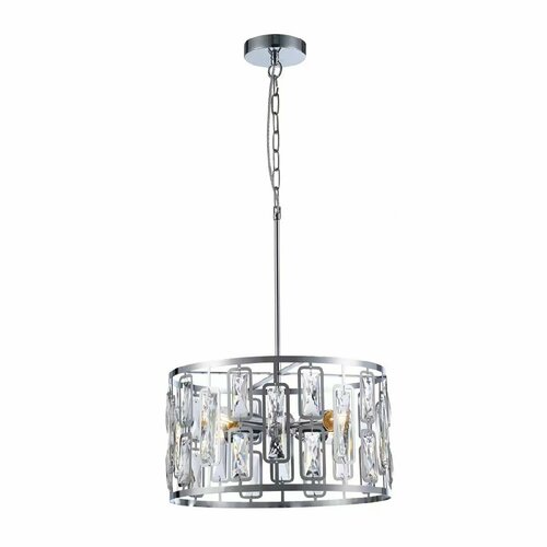 Люстра выполнена в классическом и модерном стиле, что позволяет ей гармонично вписаться в любой интерьер. Цвет арматуры - хром, что придает ей современный и стильный вид.