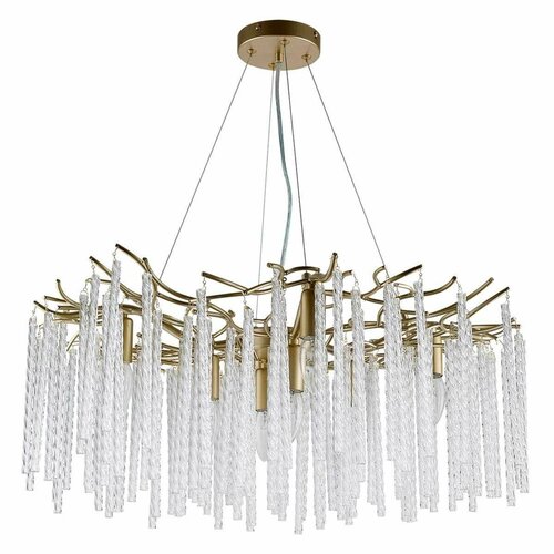 Площадь освещения, м2: 16, Стиль: Классика, Тип лампочки: Накаливания, Тип цоколя: E14, Материал: Металлические, Цвет арматуры: Матовое золото, Материал арматуры: Металл, Количество ламп: 8, Мощность лампы, W: 40, Общая мощность, W: 320, Напряжение, V: 220, Диаметр, мм: 680