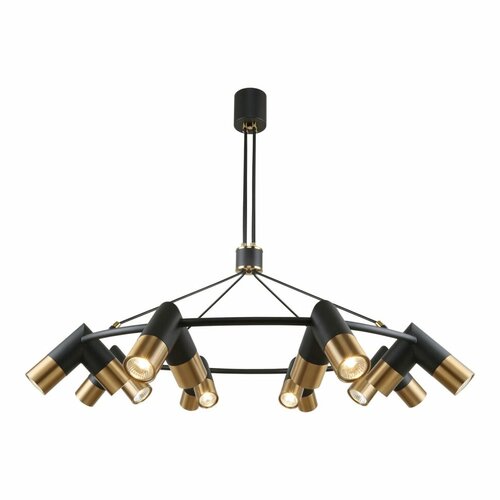 Люстра выполнена из металла, что обеспечивает ей прочность и долговечность. Цвет арматуры и плафона - черный, что придает ей элегантный и современный вид. Плафон изготовлен из металла и имеет бронзовый цвет, что добавляет изысканности и уникальности.