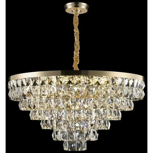 Материал плафонов из хрусталя и металлическая арматура с золотистым оттенком придают люстре роскошный вид. Цвет неокрашенных плафонов подчеркивает нежность и изысканность дизайна.