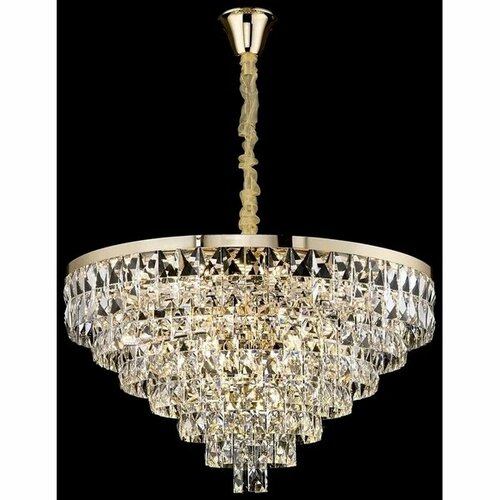 Особенностью данной модели является наличие 28 цоколей E14, предоставляя вам возможность выбора между накаливаниями или светодиодными лампочками для создания нужной атмосферы. В сочетании с хрустальными плафонами неокрашенного цвета люстра создает яркий световой акцент, придающий помещению утонченность и блеск.