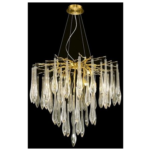 Плафоны светильника изготовлены из хрусталя, придавая ему блеск и элегантность. Арматура выполнена из металла и имеет золотисто-желтый оттенок, что добавляет шика и изыска.