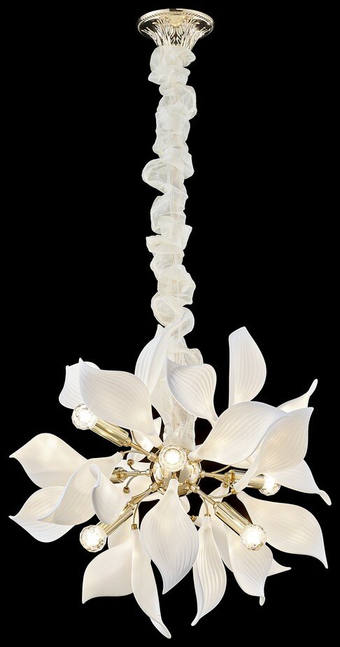 Необыкновенная модель WE123.09.303 от немецкой компании Wertmark относится к коллекции Miranda и отлично подойдет для установки на потолок спальни, оформленной в стиле прованс. Подвесная люстра Wertmark Miranda WE123.09.303 с плафонами в форме цветов осветит помещение площадью 18 кв. м. Производитель Wertmark рекомендует использовать для устройства лампы накаливания с цоколем E14 и мощностью 40 W. Прибор произведен с использованием материалов: металл и керамика и может использоваться для натяжного потолка. Основным цветом товара является золотой и белый. Подвесная люстра WE123.09.303.