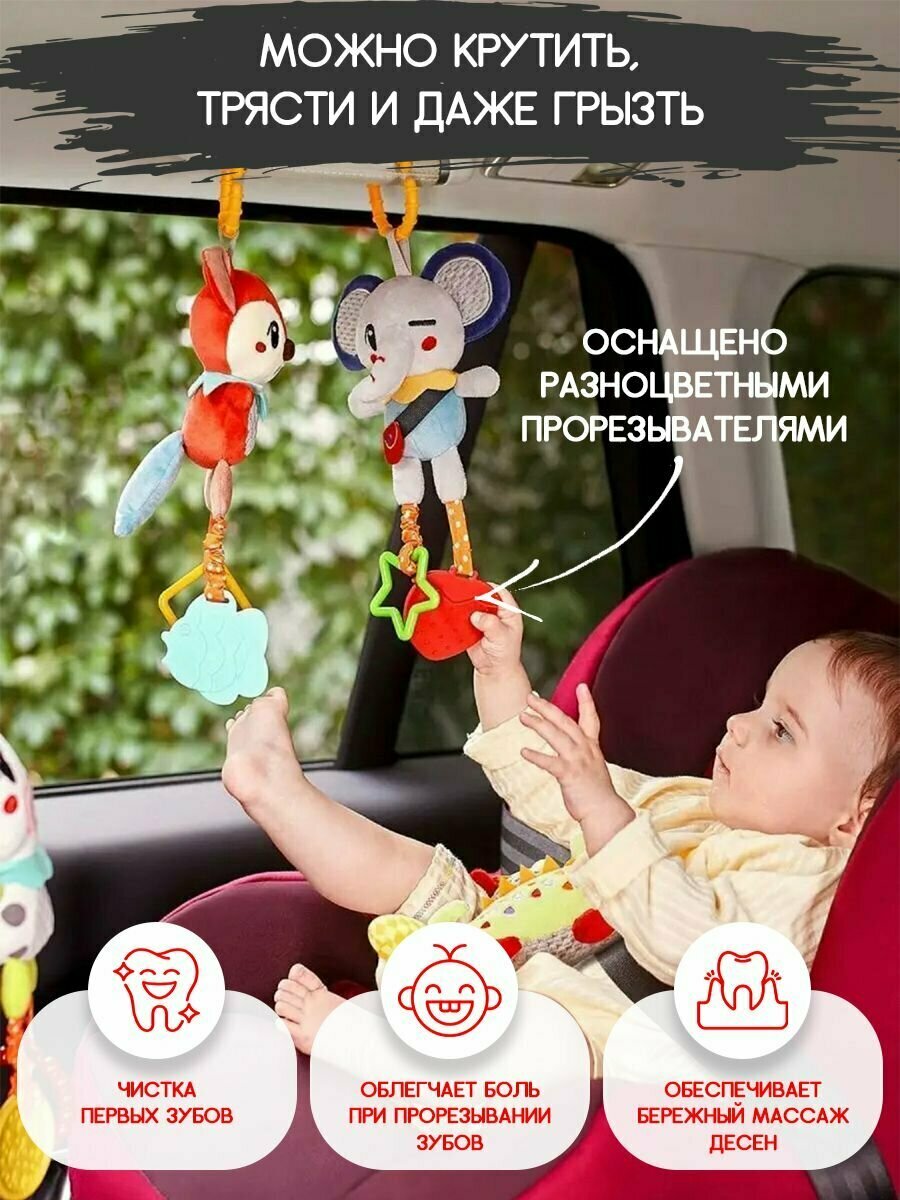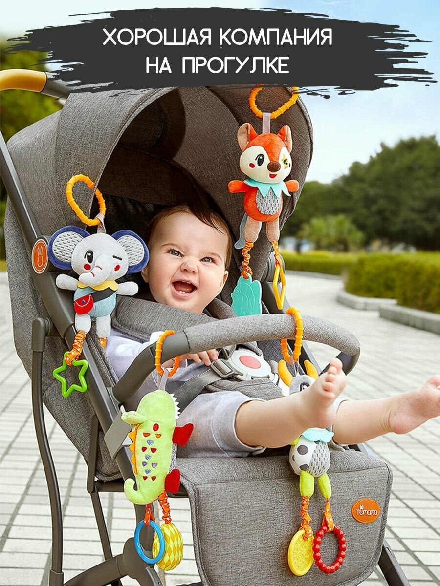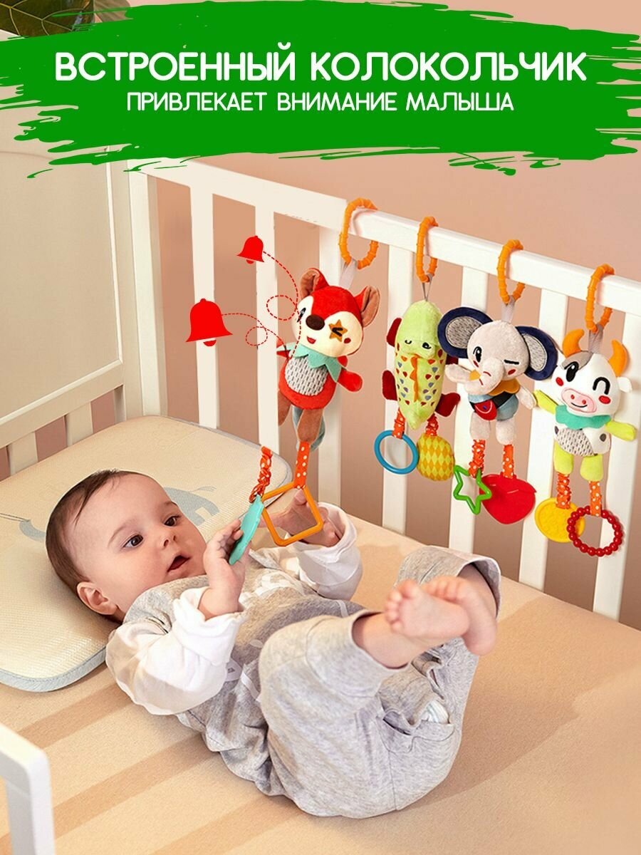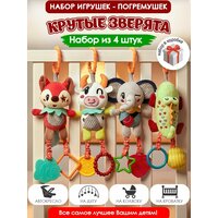 Набор для новорожденных из 4 подвесных игрушек: коровка, лисичка, слоник и крокодил. Яркие и креативные погремушки от магазина PapaRu привлекают внимание малыша! Каждая мягкая игрушка для малышей до года это и погремушка подвеска, и грызунок прорезыватель для зубов. Они легко крепятся и переносятся, что делает их отличным компаньоном для путешествий. Могут быть закреплены на коляске, автокресле, кроватке или детском стульчике. Подвесная игрушка это еще интереснее, чем игровая растяжка на коляску. Набор в кроватку для младенцев увлечет ребенка, ведь милые игрушки для новорожденных можно бросать, кусать, грызть, тянуть и трясти. Полностью гипоаллергенные грызунки не нанесут вред малышу и легки в уходе. Можно стирать в машинке, высококачественные материалы не деформируются и сохраняют все свои функции после стирок. Большая тканевая погремушка для новорожденного имеет внутри колокольчик, который издает мягкие, приятные для малыша, но не тревожащие родителей, звуки. Длинная игрушка ярких цветов универсально подойдет для девочек и мальчиков. Игровой набор для девочки и мальчика выручит мамочку и порадует малыша в первый год жизни. В период прорезывания зубов игрушку можно остудить в холодильнике и получить охлаждающий грызунок массажер для десен грудничков. Такой большой подарочный набор подойдет в подарок мальчику, девочке, новорожденному ребенку, сыну, дочке, внуку, внучке. Это прекрасные подарки женщине на рождение ребенка, выписку из роддома, Новый Год, Рождество, день матери и просто без повода.