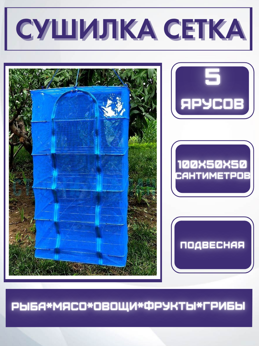 Подвесная сушилка для рыбы, овощей, фруктов и грибов 50х50х100/Складная сушилка 5 ярусов: сравнение цен, характеристики, фото, актуальное наличие и цены.