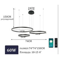 Подвесная светодиодная люстра 3 кольца 20*40*60 черная с пультом и приложением: сравнение цен, характеристики, фото, актуальное наличие и цены.
