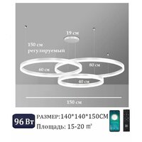 Купить Подвесная светодиодная люстра 3 кольца 40*60*80 белая с пультом и приложением с доставкой по всей России.