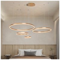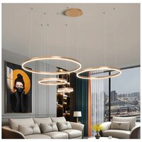Купить Подвесная светодиодная люстра 4 кольца 20*40*60*80 золотая пульт приложение с доставкой по всей России.