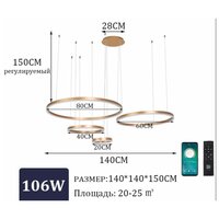 Подвесная светодиодная люстра 4 кольца 20*40*60*80 золотая пульт приложение: сравнение цен, характеристики, фото, актуальное наличие и цены.